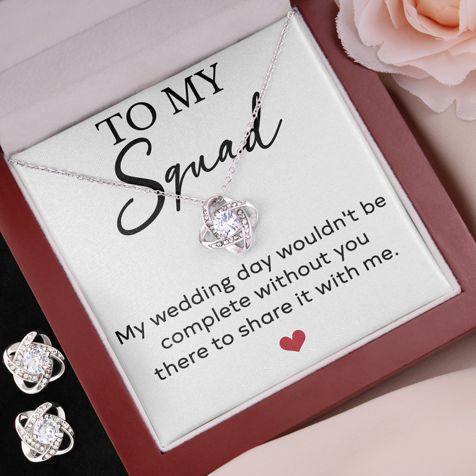 To My Squad Love Knot Necklace & Earring Set Bridesmaid Gift | Bridal Jewelry | Matron Of Honor Gift | Wedding Party Gift Ideas